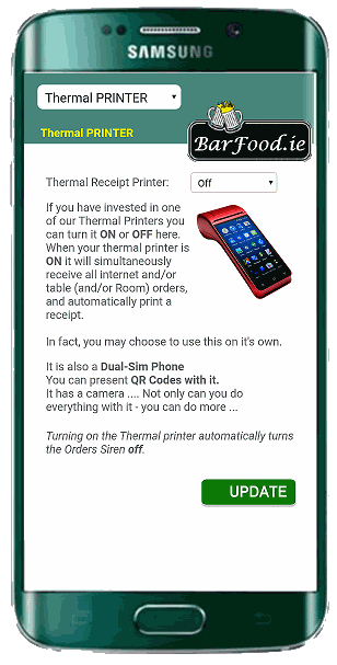 printer: If you have invested in one of our Thermal Printers you can turn it ON or OFF here.
