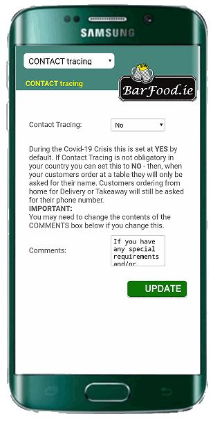 If Contact Tracing is not obligatory in your country you can set this to NO - then, when your customers order at a table they will only be asked for their name.