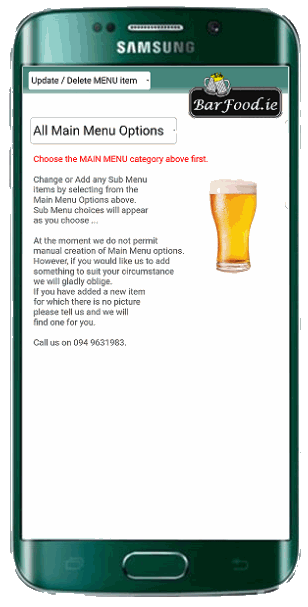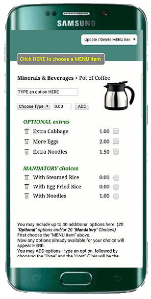 (Optional choices may include items such as "Extra Mushrooms", "Side Salad", "Can of Coke" - essentially anything you think the customer might like with their meal.) Sub MENU choices